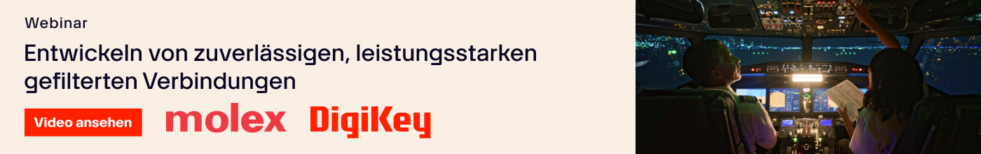 Molex und DigiKey unterstützen Systemarchitekten in der Luft- und Raumfahrt sowie im Verteidigungsbereich mit hochmodernen Verbindungslösungen, die die gesetzlichen Normen erfüllen oder übertreffen. Dank unserer Erfahrung mit EMI- und RFI-geschirmten Produkten können unsere Kunden komplizierte Designprobleme lösen, die Sicherheit verbessern und einen Wettbewerbsvorteil in der Luftfahrt- und Verteidigungsindustrie erzielen. Designmöglichkeiten wie die Elektrifizierung von Flugzeugen oder die Transformation von Luft- und Raumfahrtanwendungen durch autonome Systeme und IoT werden durch die 140-jährige Erfahrung von Molex und AirBorn, einem Molex-Unternehmen, unterstützt.
