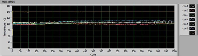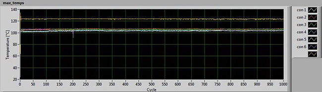 Figure 3 shows no variation in the temperatures after the short circuit events. The connectors passed the test.