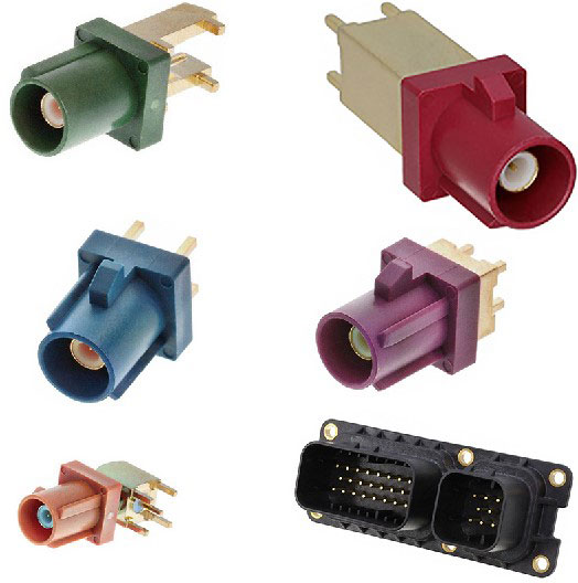 I connettori RF FAKRA di Adam Tech sono progettati per soddisfare i requisiti meccanici, elettrici e ambientali specifici del settore automotive e le specifiche USCAR-17 e USCAR-18. Ogni connettore FAKRA è composto da un connettore coassiale SMA o SMB in metallo modificato alloggiato in un isolante in plastica con codifica colore per soddisfare i requisiti specifici delle applicazioni automotive. Adam Tech offre anche una serie specificamente progettata di strisce di pin e basette su scheda rivestite per applicazioni automotive che richiedono design di chiusura durevoli e sicuri. Tutti i connettori FAKRA e automotive di Adam Tech sono certificati UL e a norma RoHS.